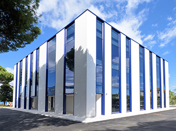 Si tratta di un moderno edificio di 1.800 metri quadrati, distribuito su tre piani vicino allo stabilimento Vitakraft di Castiglione del Lago.
